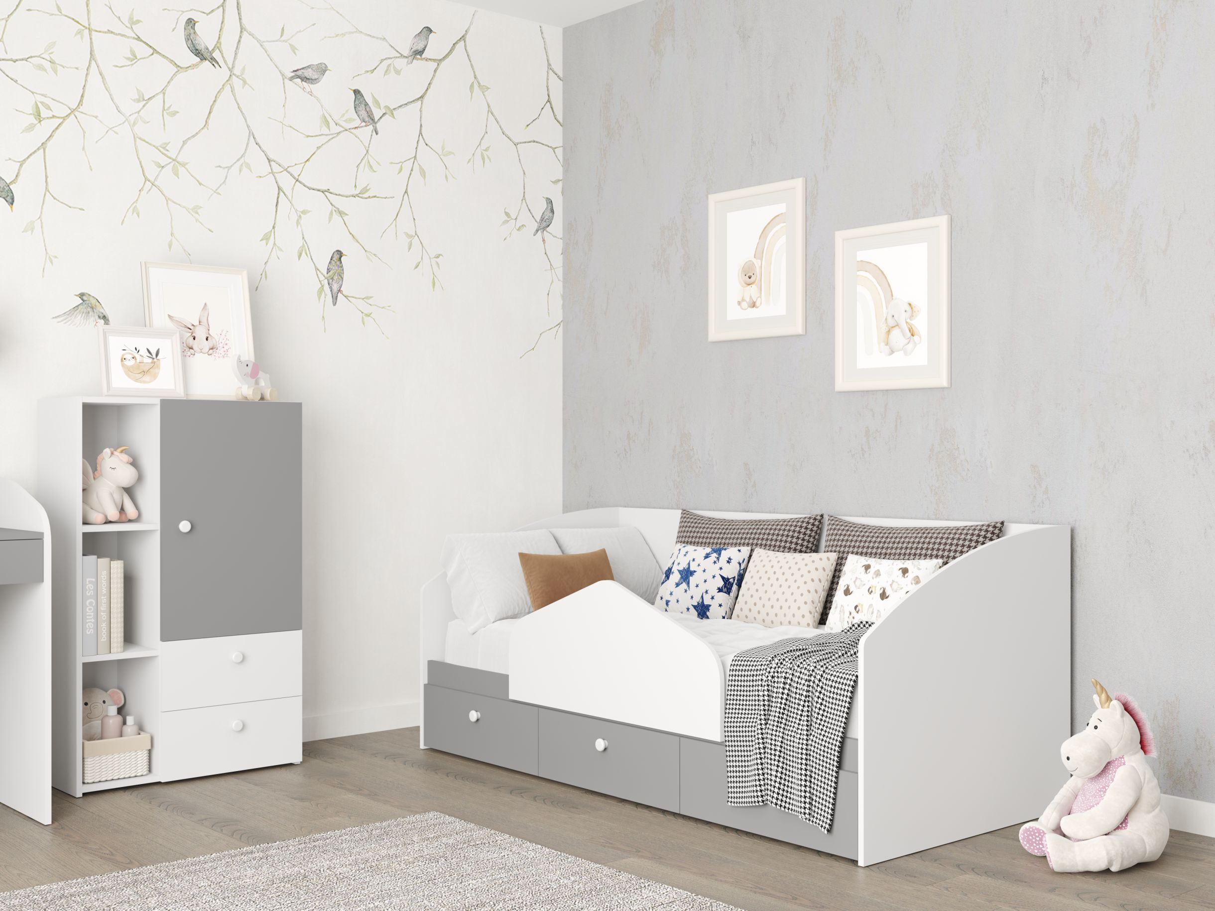 Детская Умка 2 ЛДСП белый / ЛДСП серый – купить за 18 174 ₽ | Интернет-магазин мебели «Альбина»