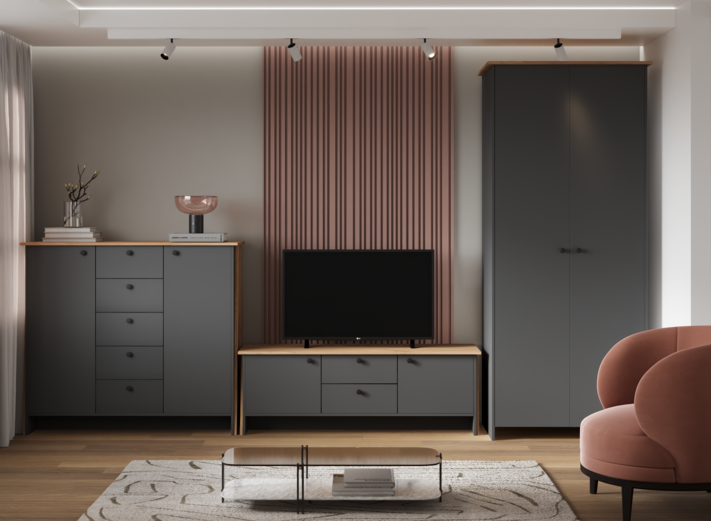 Гостиная Теодора ЛДСП крафт золотой/графит / ЛДСП графит