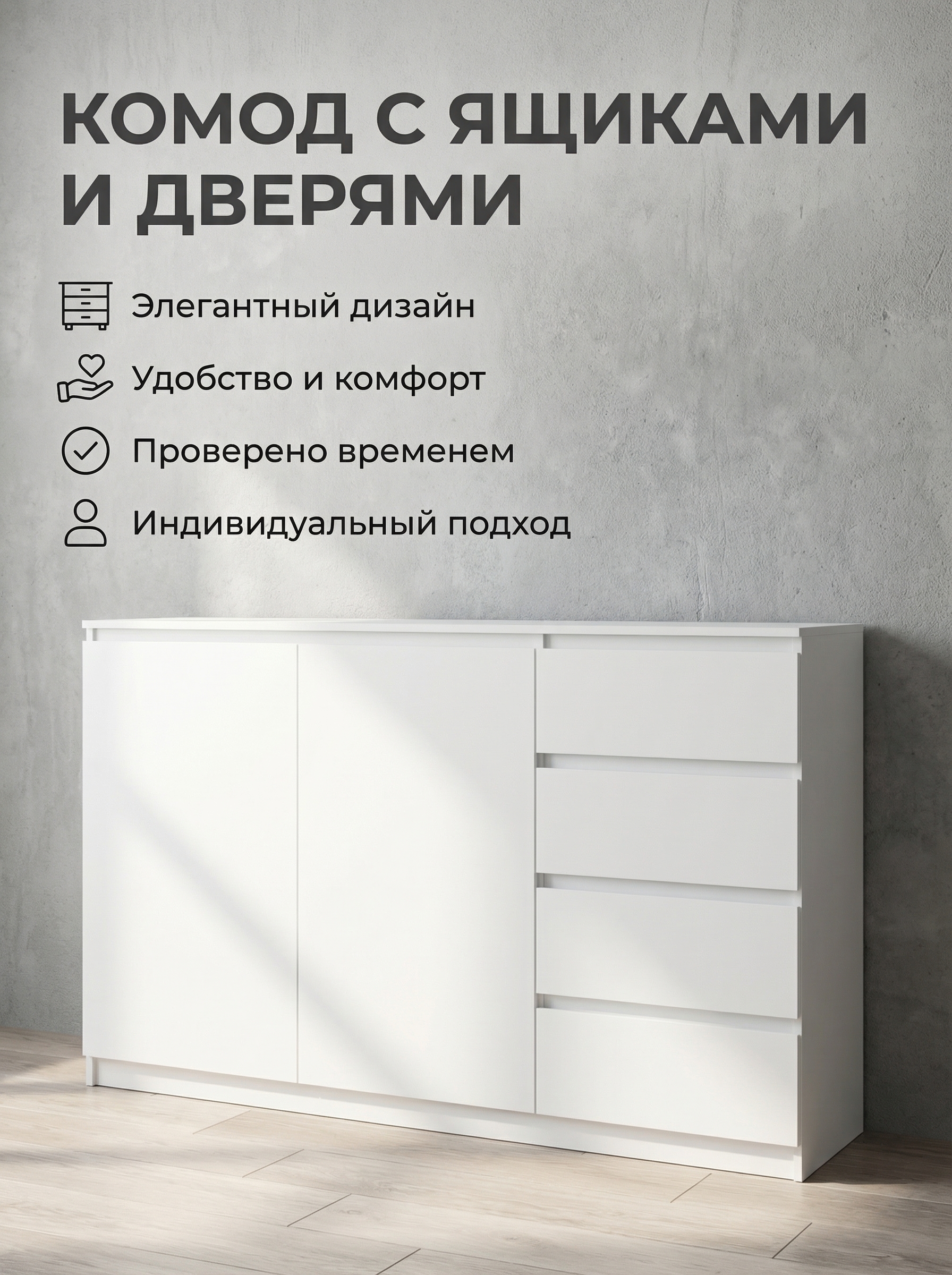 Комод «Комби 1 Мадера» — стильное и функциональное решение для вашего интерьера. Модель сочетает четыре вместительных ящика и два отделения за дверцами с полкой, что позволяет удобно организовать хранение одежды, белья, аксессуаров и других вещей, поддерживая порядок каждый день. Элегантный дизайн гармонично впишется в спальню, гостиную или прихожую, создавая уютную и аккуратную атмосферу. Оптимальные размеры (ширина 160 см, высота 100 см, глубина 42 см) делают комод практичным, вместительным и удобным для различных помещений. Качественные материалы и надежная конструкция обеспечивают долговечность. Комод «Мадера» от фабрики Альбина — это сочетание стиля, функциональности и комфорта для вашего дома.