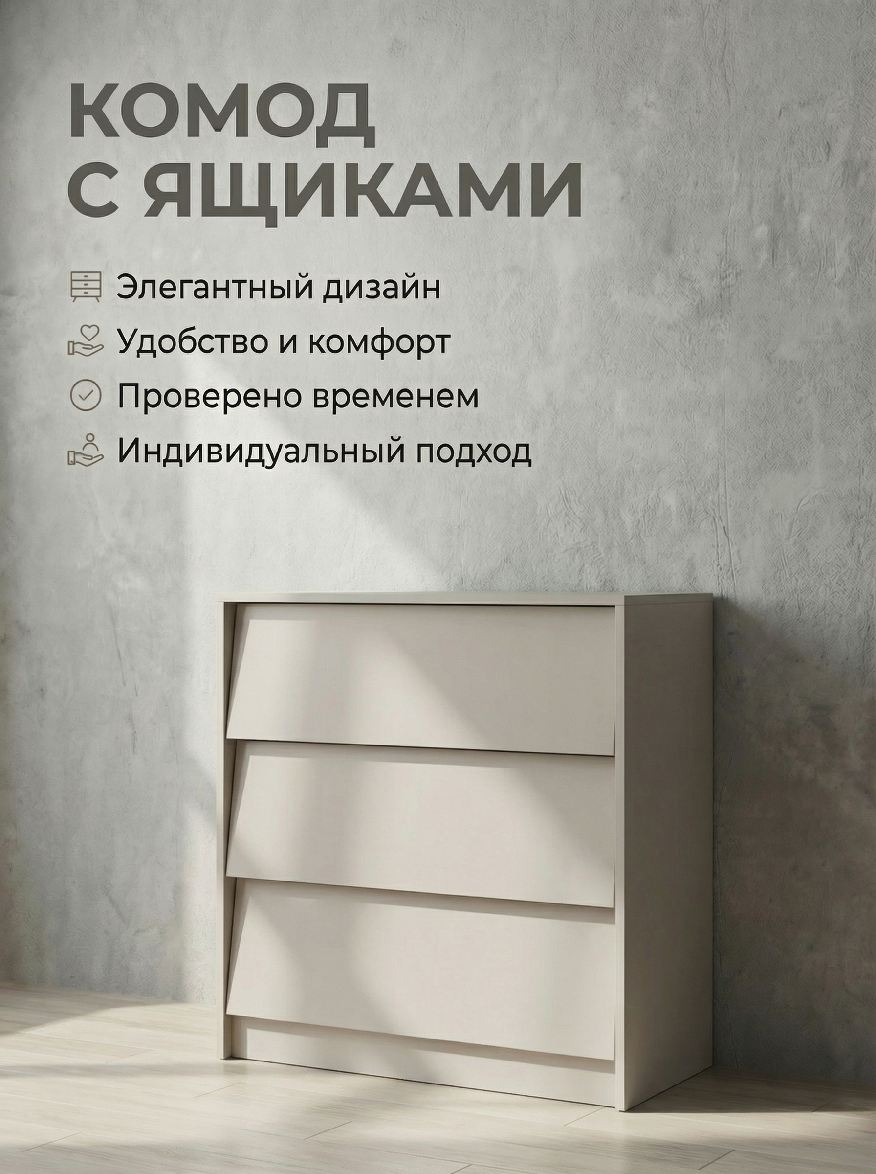 Комод «Ева» с 3 ящиками — стильное и практичное решение для вашего интерьера. Модель сочетает элегантный дизайн и функциональность, позволяя удобно организовать хранение одежды, белья и аксессуаров. Три вместительных ящика обеспечивают порядок и быстрый доступ к вещам, экономя пространство комнаты. Лаконичный внешний вид гармонично впишется в спальню, гостиную или прихожую, добавляя интерьеру аккуратность и уют. Компактные размеры (ширина 80,2 см, высота 72 см, глубина 40,3 см) делают комод отличным выбором для небольших помещений. Качественные материалы и надежная конструкция гарантируют долговечность. Комод «Ева» — это сочетание комфорта, стиля и удобства для вашего дома.