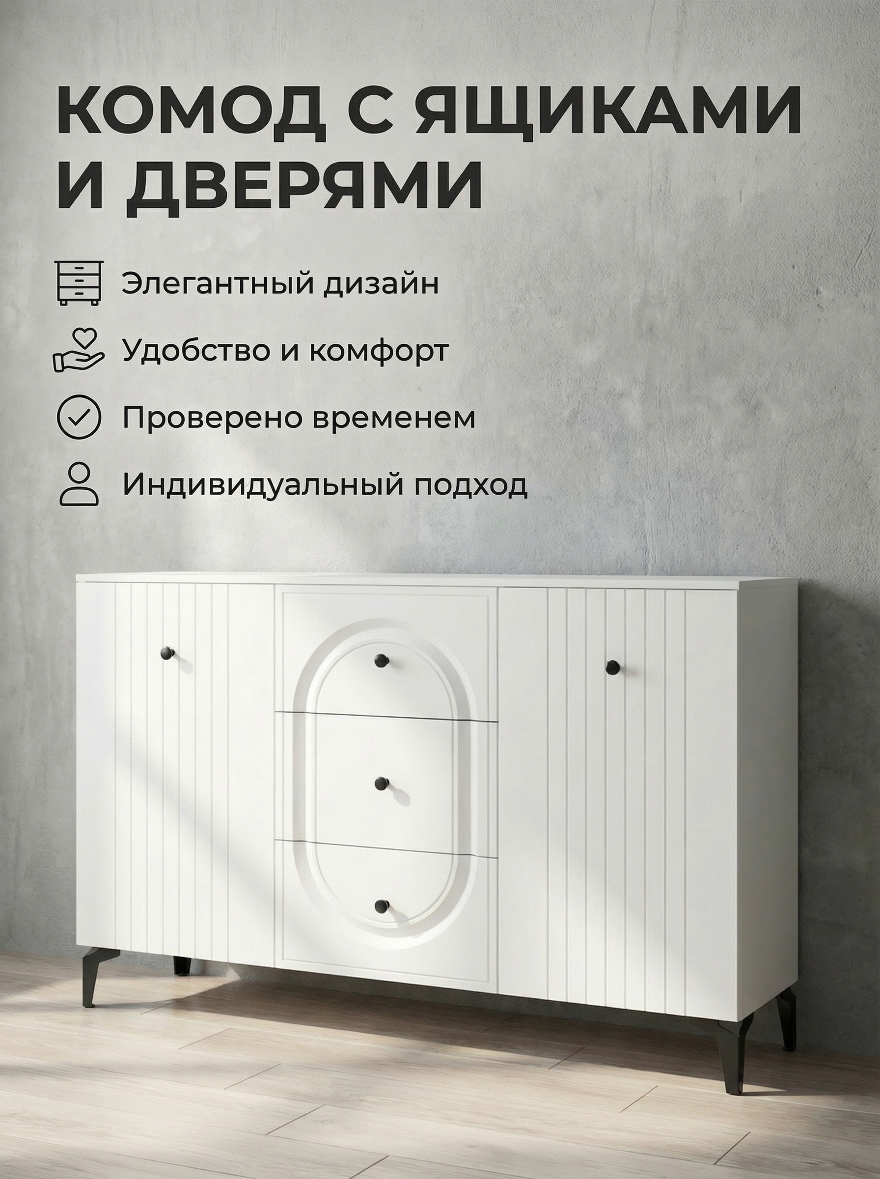 Комод «Венеция» — стильное и функциональное решение для хранения вещей. Элегантный дизайн подчеркнет индивидуальность вашего интерьера и гармонично впишется в спальню, гостиную или прихожую. Модель оснащена тремя вместительными ящиками, которые позволяют удобно организовать хранение одежды, белья и аксессуаров, поддерживая порядок каждый день. Фасады выполнены из МДФ, что придает изделию аккуратный внешний вид и долговечность. Компактные размеры (ширина 133,2 см, высота 87,5 см, глубина 38,4 см) делают комод отличным выбором даже для небольших помещений. Конструкция на ножках добавляет легкости внешнему виду и упрощает уборку. Комод «Венеция» — это сочетание практичности, стиля и комфорта для вашего дома.