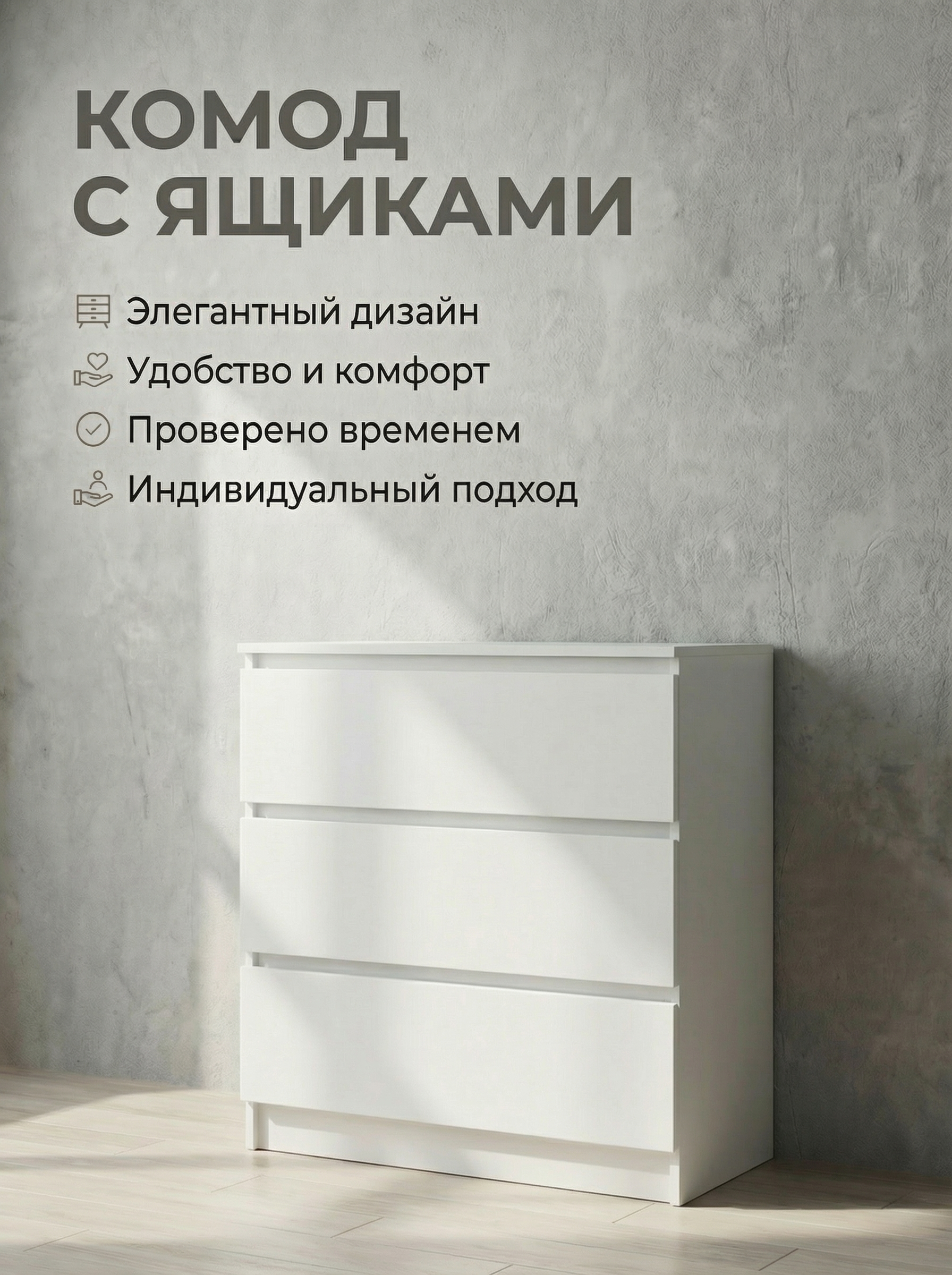 Комод «К3М Мадера» — стильное и функциональное решение для вашего интерьера. Модель оснащена тремя вместительными ящиками, которые позволяют удобно организовать хранение одежды, белья и аксессуаров, поддерживая порядок каждый день. Лаконичный дизайн гармонично впишется в спальню, гостиную или прихожую, добавляя интерьеру аккуратность и уют. Оптимальные размеры (ширина 80 см, высота 77,5 см, глубина 42 см) делают комод практичным и удобным для различных помещений. Качественные материалы и надежная конструкция обеспечивают долговечность и комфорт в использовании. Комод «Мадера» — это сочетание стиля, удобства и функциональности для вашего дома.