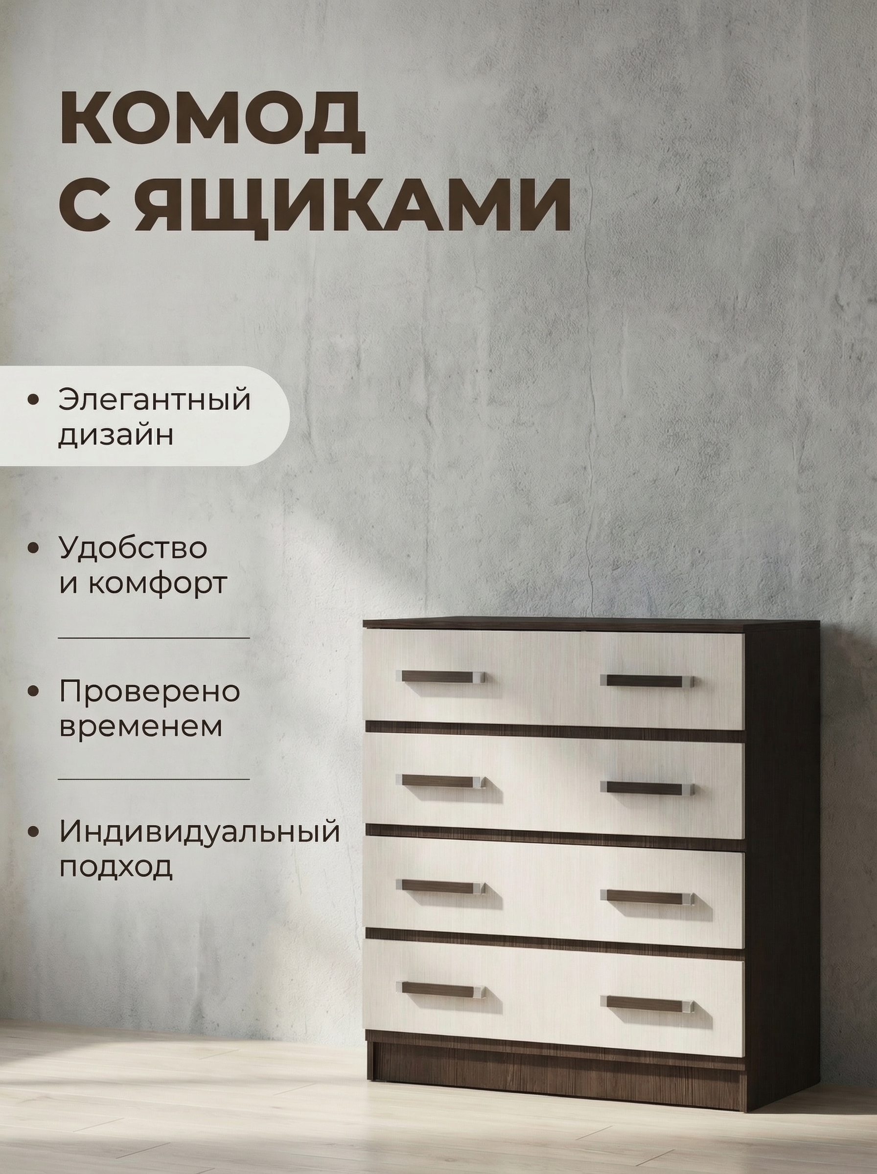 Комод «Лотос» с 4 ящиками — элегантное и функциональное решение для вашего интерьера. Модель идеально подходит для хранения одежды, белья и аксессуаров, помогая поддерживать порядок каждый день. Четыре вместительных ящика позволяют удобно организовать пространство и быстро находить нужные вещи. Стильный дизайн гармонично впишется в спальню, гостиную или прихожую, добавляя интерьеру аккуратность, уют и нотки изысканности. Оптимальные размеры (ширина 80 см, высота 86,6 см, глубина 42 см) делают комод практичным и удобным для различных помещений. Качественные материалы и надежная конструкция обеспечивают долговечность и комфорт в использовании. Комод «Лотос» — это сочетание стиля, удобства и функциональности для вашего дома.