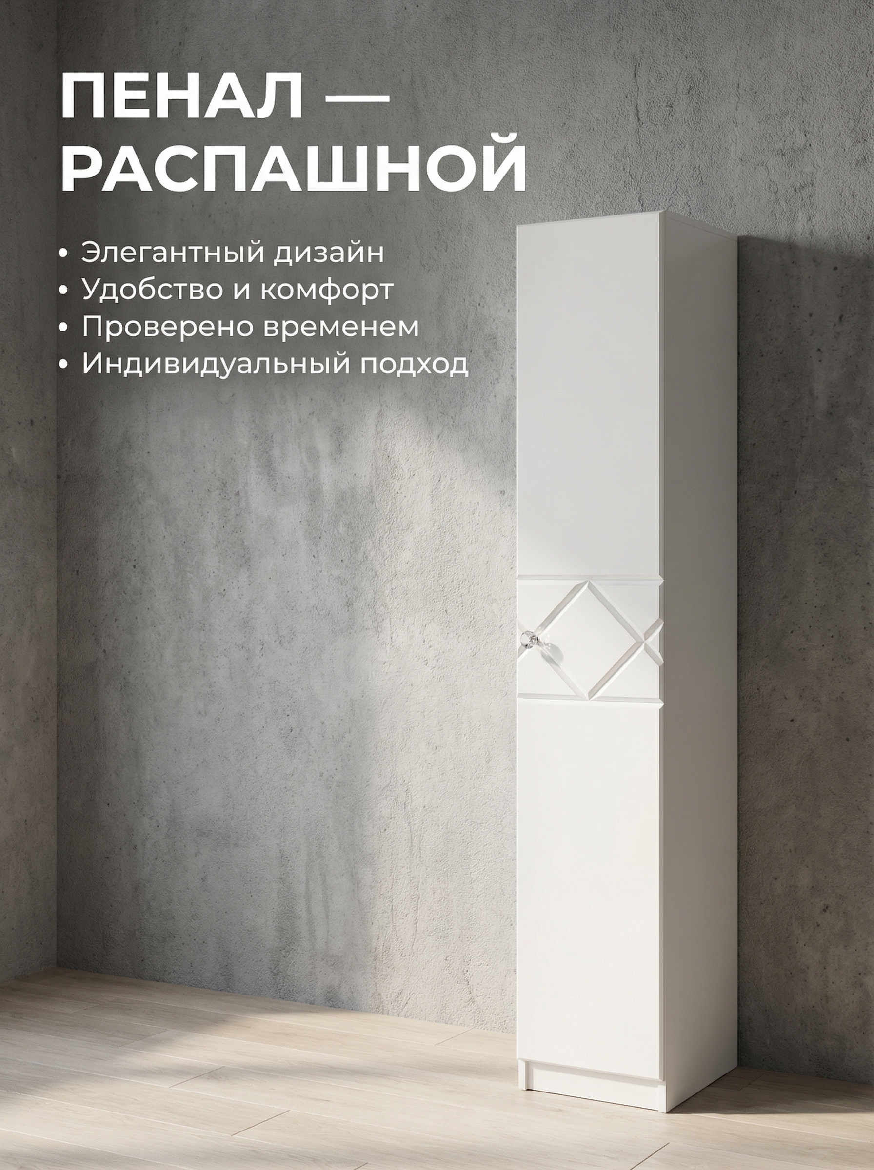 Пенал «Севиль» — компактное и функциональное решение для вашего интерьера. Узкая модель с одной дверцей идеально подходит для хранения документов, канцелярии, одежды и личных вещей, помогая поддерживать порядок как дома, так и в офисе. Встроенные полки позволяют удобно организовать пространство и рационально использовать каждый сантиметр. Фасады из МДФ придают изделию аккуратный и современный внешний вид, а лаконичный дизайн гармонично впишется в любой интерьер. Оптимальные размеры (ширина 40 см, высота 220 см, глубина 52 см) делают пенал отличным выбором для небольших помещений. Качественные материалы и надежная конструкция обеспечивают долговечность. Пенал «Севиль» — это сочетание компактности, стиля и удобства для вашего пространства.