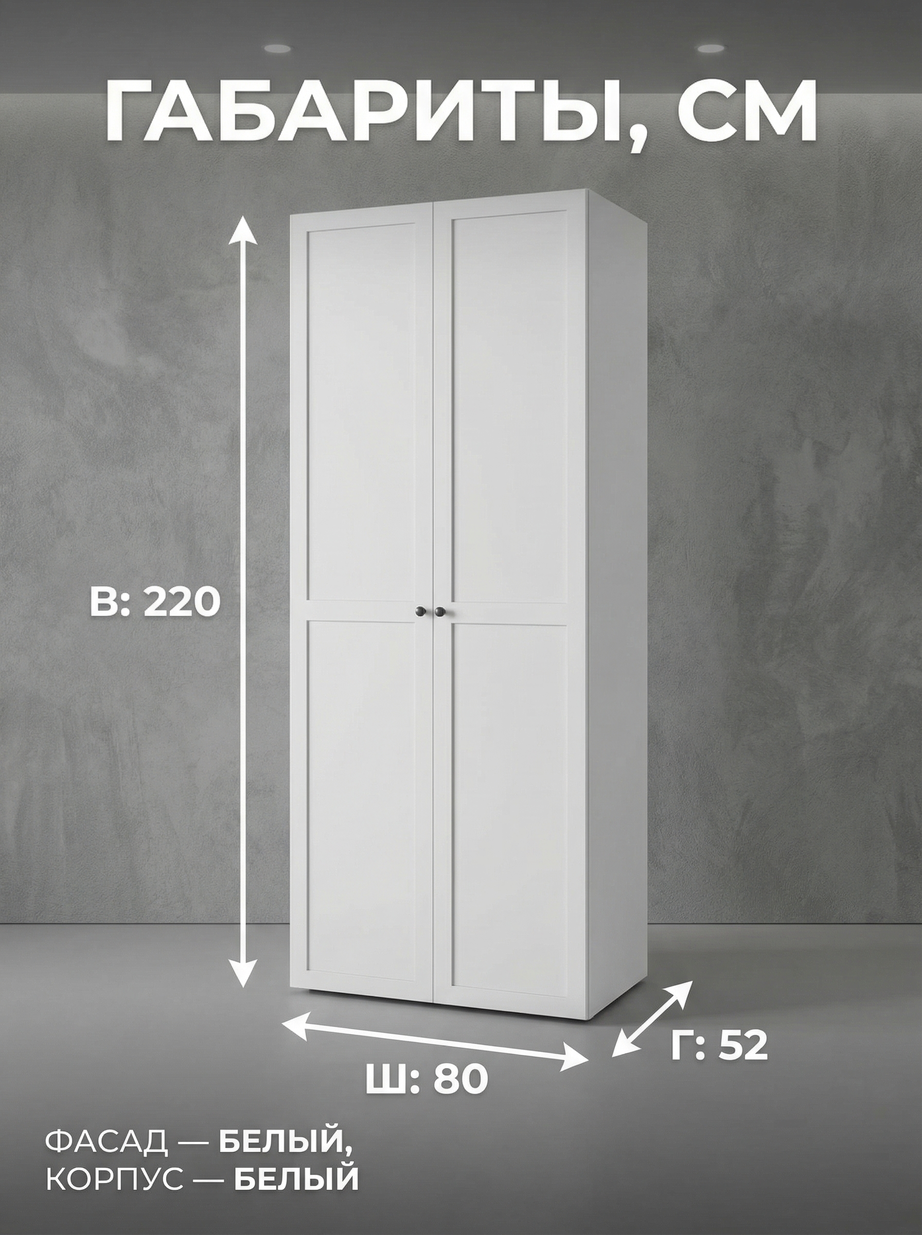 Шкаф «Мишель» 2-дверный — стильное и функциональное решение для вашего интерьера. Модель оснащена просторными полками и штангой, что позволяет удобно хранить одежду, бельё и аксессуары всей семьи, поддерживая порядок каждый день. Две широкие дверцы обеспечивают легкий доступ к вещам, а продуманный внутренний дизайн делает использование максимально комфортным. Элегантный и современный внешний вид гармонично впишется в спальню, гостиную или прихожую, добавляя интерьеру аккуратность и нотку изысканности. Оптимальные размеры (ширина 80 см, высота 220 см, глубина 52 см) делают шкаф практичным и универсальным для любых помещений. Качественные материалы гарантируют долговечность и надежность. Шкаф «Мишель» — это сочетание стиля, функциональности и комфорта для вашего дома.