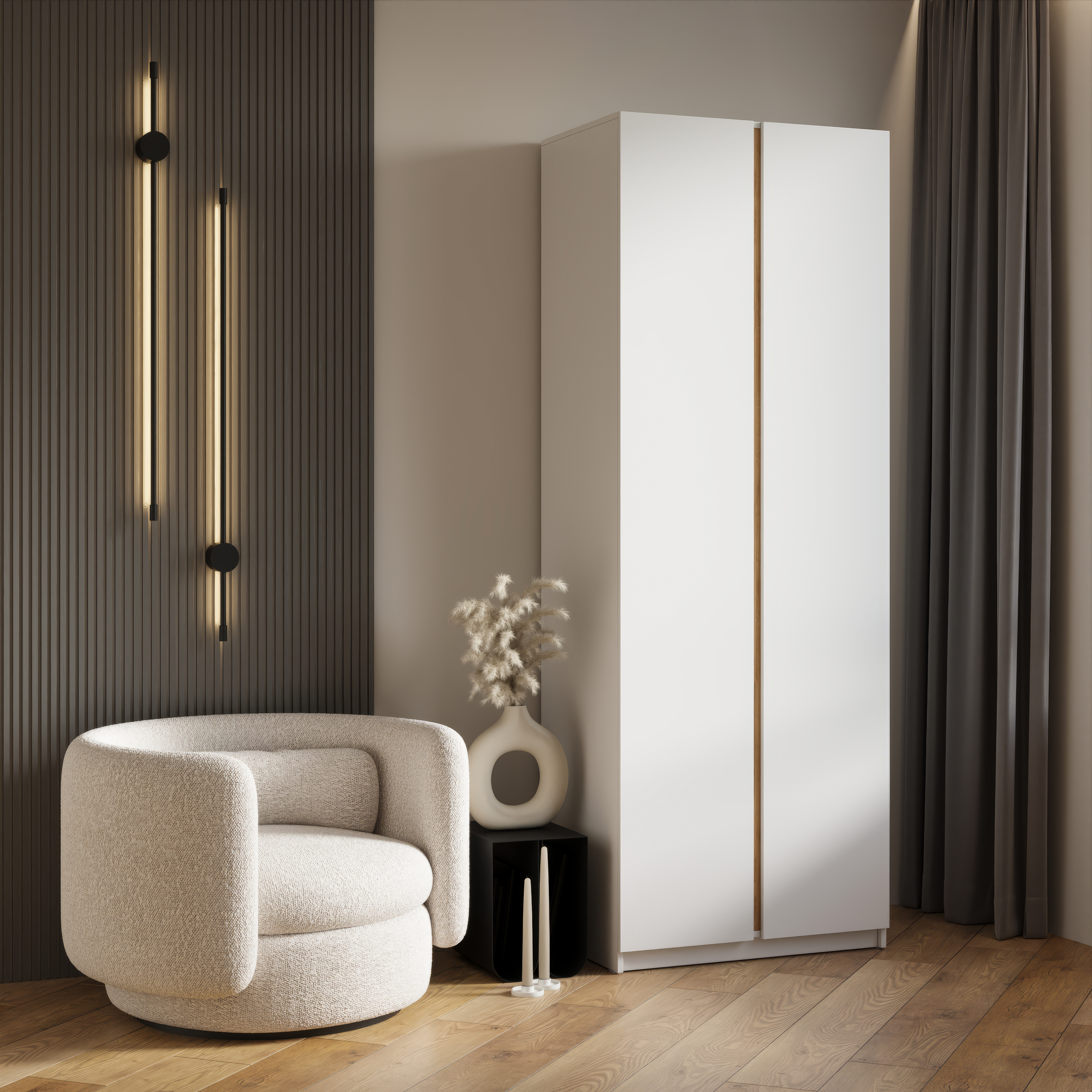Для каждого корпуса шкафа в комплекте предусмотрено два варианта вертикальных вставок на выбор: ЛДСП чёрный и ЛДСП крафт золотой