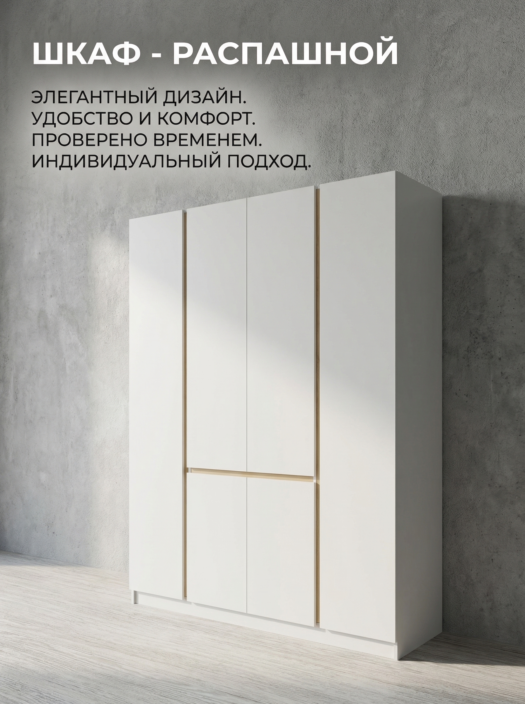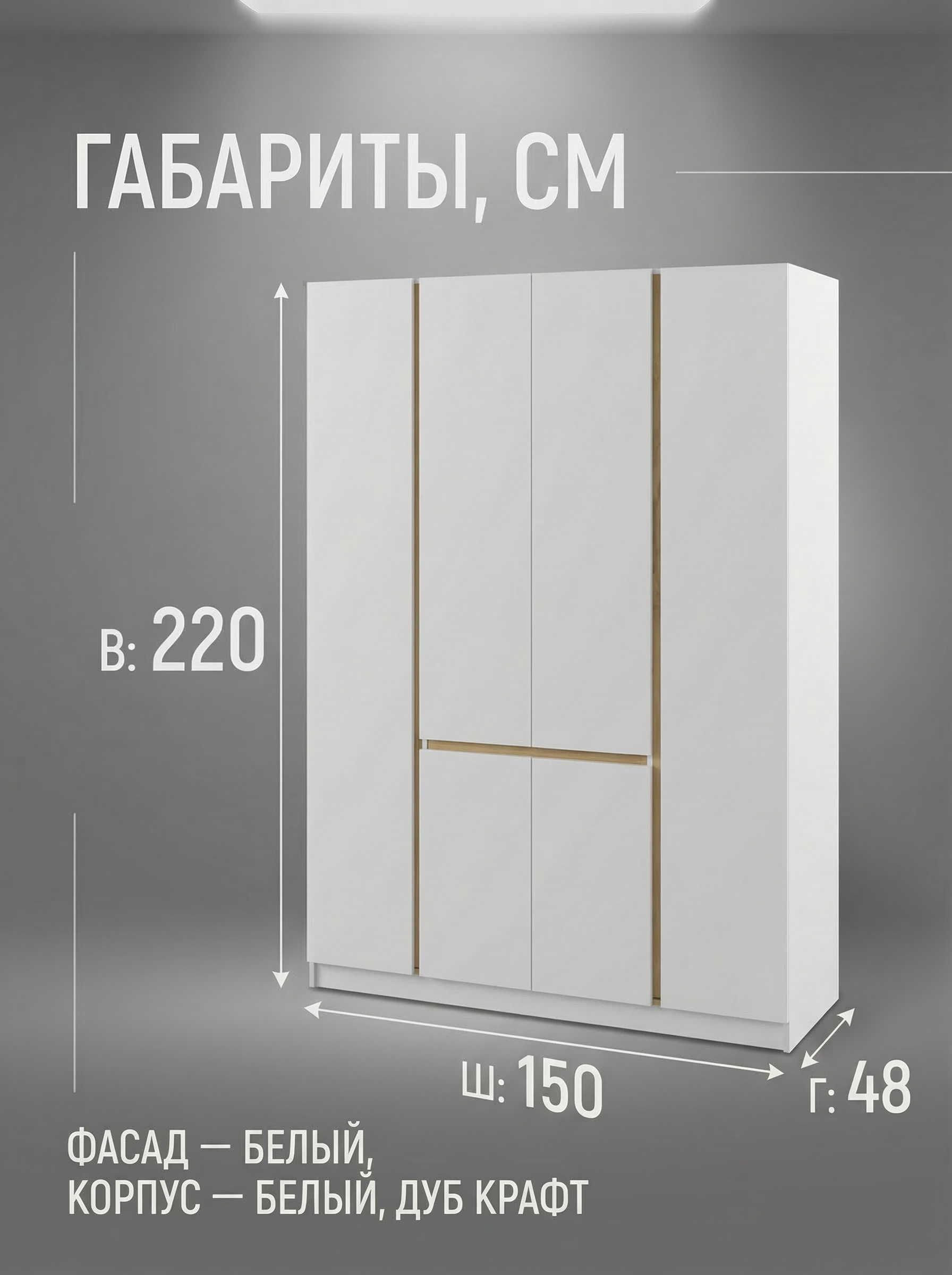 Шкаф «М1500.4 Мадера» 4-х дверный — стильное и функциональное решение для вашего интерьера. Модель отличается высокой вместительностью и продуманным внутренним наполнением с полками и штангой, что позволяет удобно хранить одежду и поддерживать порядок каждый день. Элегантный современный дизайн гармонично впишется в спальню, гостиную или прихожую, добавляя интерьеру уют и завершенность. Оптимальные размеры (ширина 150 см, высота 220 см, глубина 48 см) позволяют эффективно использовать пространство комнаты. Качественные материалы и надежная конструкция обеспечивают долговечность и комфорт в эксплуатации. Шкаф «Мадера» — это идеальное сочетание практичности, стиля и удобства для вашего дома.
