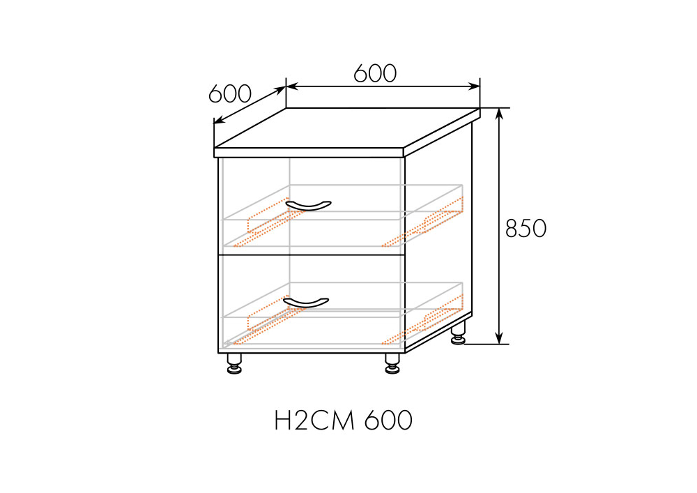 Шкаф нижний 2 ящика (премиум фурнитура скрытый монтаж) Павла Н2СМ 600