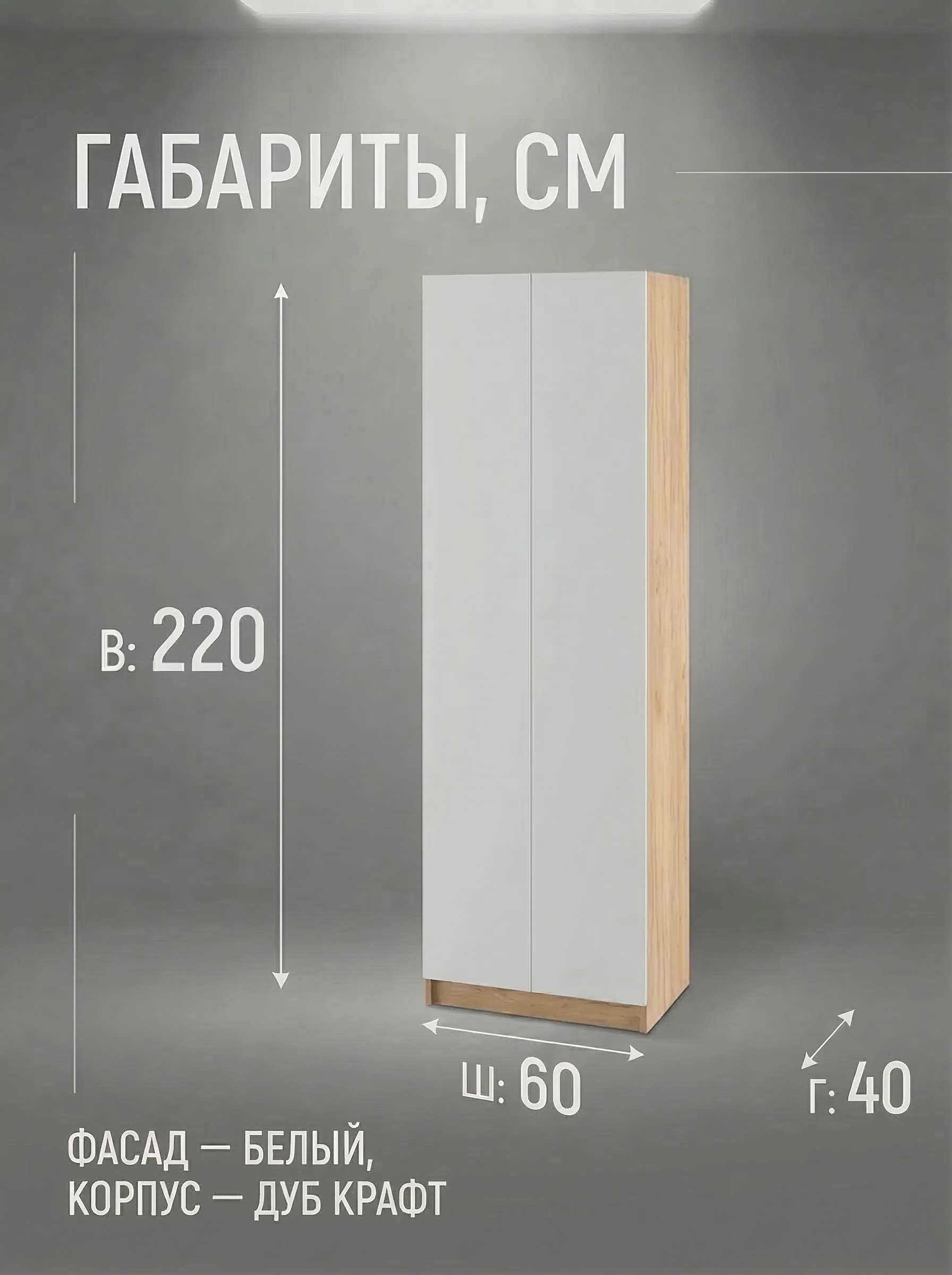 Шкаф «Сева» 2-х дверный — практичное и компактное решение для вашего интерьера. Узкая модель позволяет эффективно использовать пространство даже в небольших помещениях, обеспечивая удобное хранение одежды и аксессуаров. Вместительный корпус помогает аккуратно разместить вещи и поддерживать порядок каждый день. Лаконичный и элегантный дизайн гармонично впишется в спальню, прихожую или гостиную, добавляя интерьеру аккуратность и уют. Оптимальные размеры (ширина 60 см, высота 220 см, глубина 40 см) делают шкаф удобным и функциональным для ежедневного использования. Качественные материалы и надежная конструкция обеспечивают долговечность. Шкаф «Сева» — это сочетание практичности, стиля и комфорта для вашего дома.