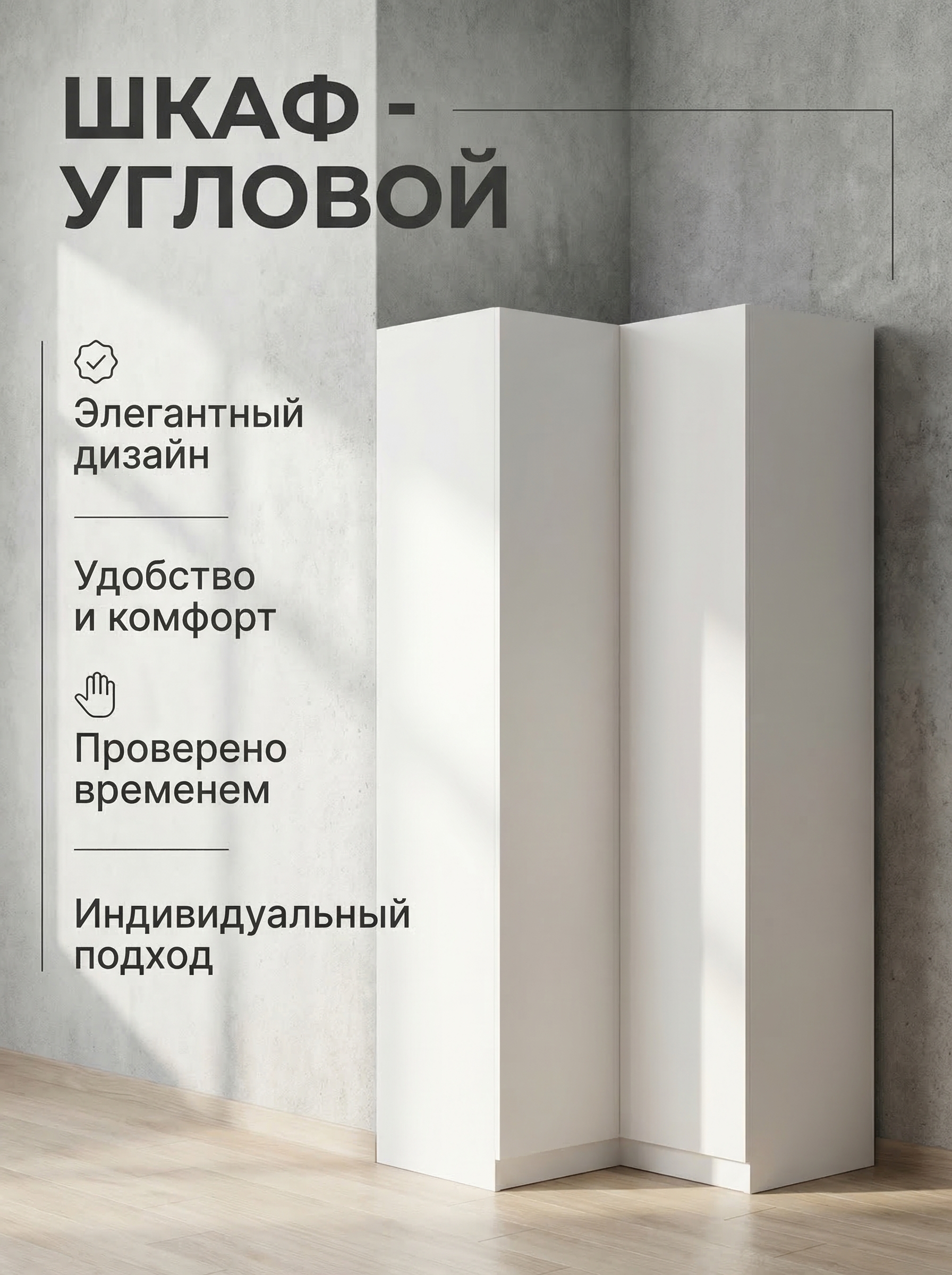 Шкаф «ШМУ Мадера» угловой — стильное и функциональное решение для вашего интерьера. Модель сочетает элегантный дизайн с практичностью, создавая комфортное пространство для хранения одежды, обуви и аксессуаров. Встроенные полки обеспечивают удобное размещение вещей и помогают поддерживать порядок каждый день. Стильный фасад из МДФ подчеркнет индивидуальность вашего дома, а качественные материалы и надежная конструкция гарантируют долговечность и легкость в уходе. Оптимальные размеры (ширина 96 см, высота 210 см, глубина 52 см) делают шкаф универсальным решением даже для компактных помещений. Шкаф «Мадера» угловой — это сочетание стиля, удобства и функциональности для вашего дома.