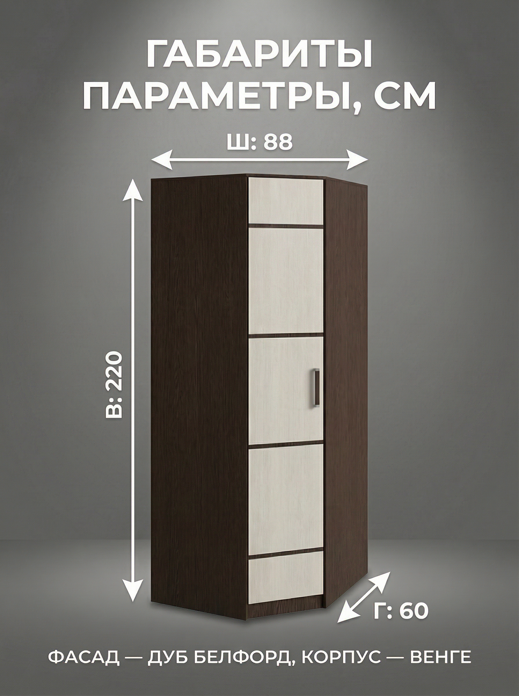 Шкаф «Лотос» угловой — практичное и стильное решение для рационального использования пространства. Модель позволяет эффективно задействовать угол комнаты, создавая дополнительное место для хранения одежды и аксессуаров. Удобное внутреннее наполнение с полками помогает грамотно организовать вещи и поддерживать порядок каждый день. Элегантный дизайн гармонично впишется в спальню, гостиную или прихожую, добавляя интерьеру уют и аккуратность. Оптимальные размеры (ширина 88 см, высота 220 см, глубина 60 см) делают шкаф удобным и функциональным даже для компактных помещений. Качественные материалы и надежная конструкция обеспечивают долговечность. Шкаф «Лотос» — это сочетание практичности, стиля и комфорта для вашего дома.