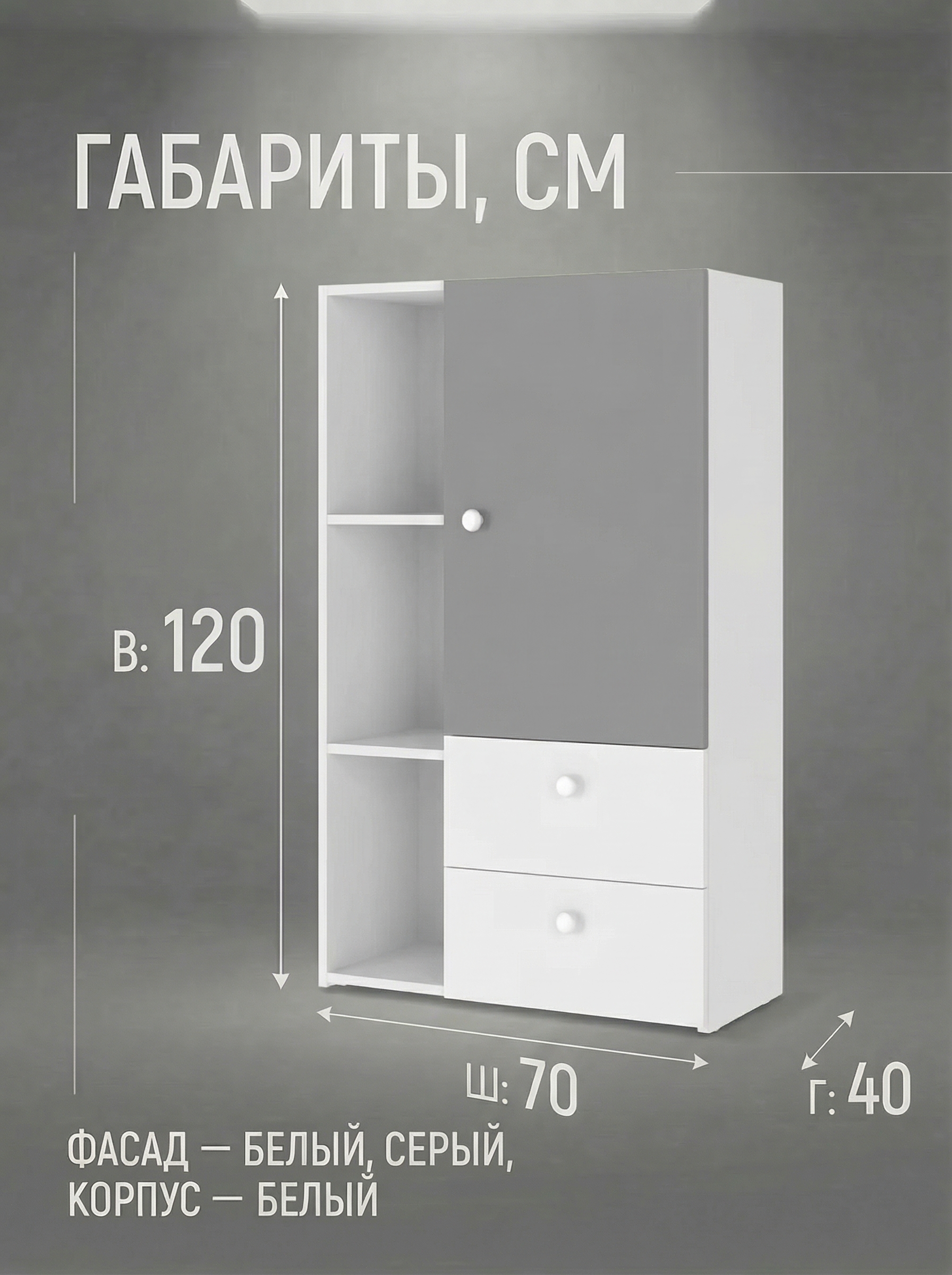 Прочный каркас гарантирует долговечность, а экологичные материалы сохраняют здоровье вашей семьи. Оптимальные размеры (ширина 70 см, высота 120 см, глубина 42 см) делают шкаф удобным и функциональным даже для небольших помещений. Шкаф «Умка» — это сочетание надежности, стиля и практичности для вашего дома.