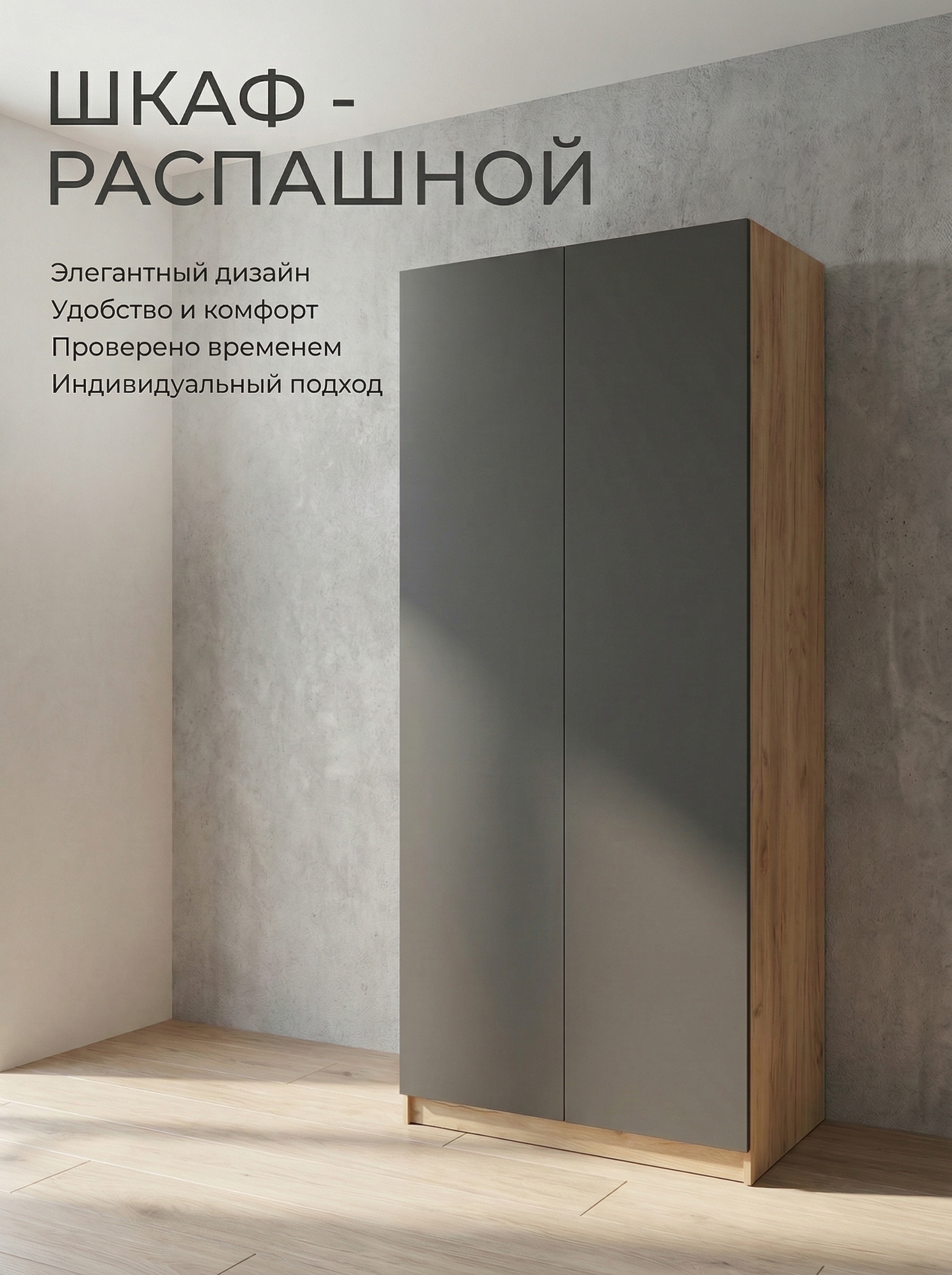 Шкаф универсальный «Сева» — практичное и стильное решение для вашего интерьера. Модель идеально подходит для удобного хранения одежды и аксессуаров, помогая поддерживать порядок каждый день. Внутреннее наполнение включает полки и штангу, что позволяет рационально организовать пространство и разместить как сложенные вещи, так и одежду на вешалках. Универсальный современный дизайн гармонично впишется в спальню, гостиную или прихожую, добавляя интерьеру аккуратность и уют. Оптимальные размеры (ширина 90 см, высота 220 см, глубина 53 см) делают шкаф удобным и практичным для ежедневного использования. Качественные материалы и надежная конструкция обеспечивают долговечность. Шкаф «Сева» — это сочетание функциональности, стиля и комфорта для вашего дома.