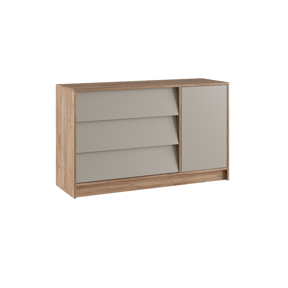 - Компактность и вместительность. Двухстворчатый шкаф и комод позволяют рационально использовать пространство даже в небольших комнатах, обеспечивая аккуратное хранение вещей.